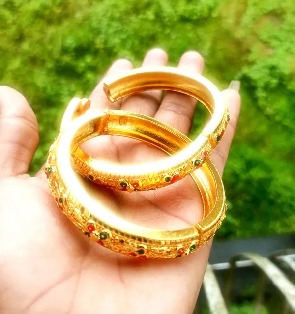 Assamese Traditional Copper Gold-Plated Red Green Colour Bangle Bracelet Se..More